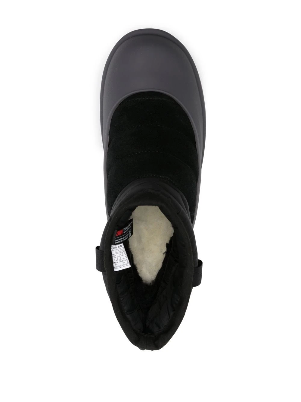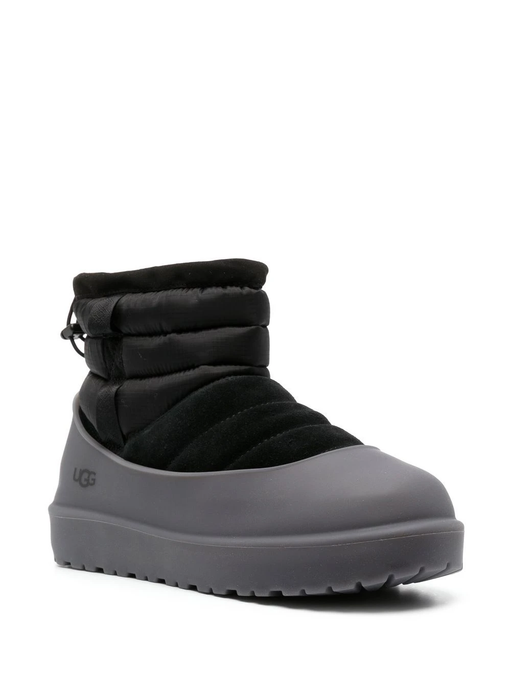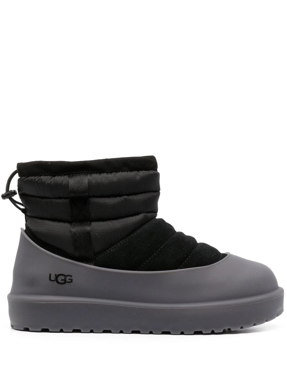 panelled drawstring booties from UGG featuring black, panelled design, logo print to the side, round toe, drawstring fastening, ankle-length and flat sole.