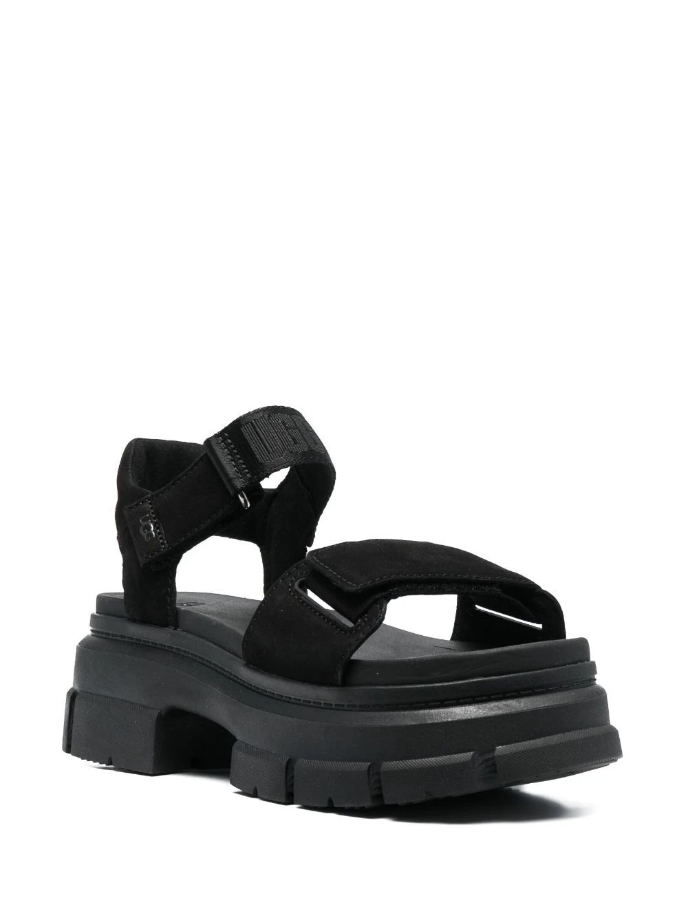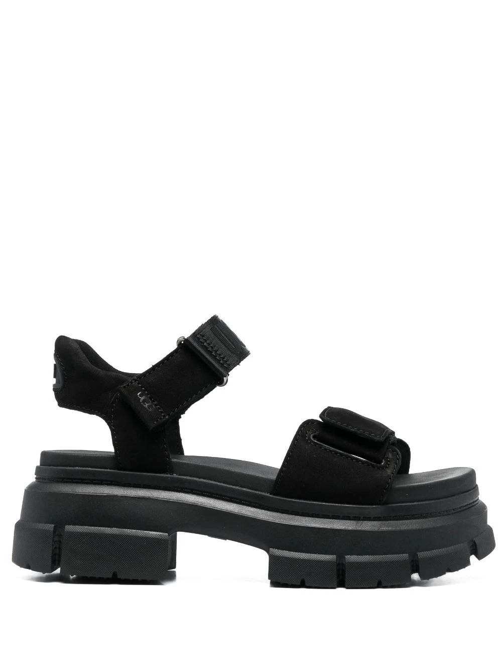 Style and practicality meet halfway in these UGG sandals. Made from black leather and suede, this pair features secure touch-strap fastening and moulded footbeds for comfort.Â